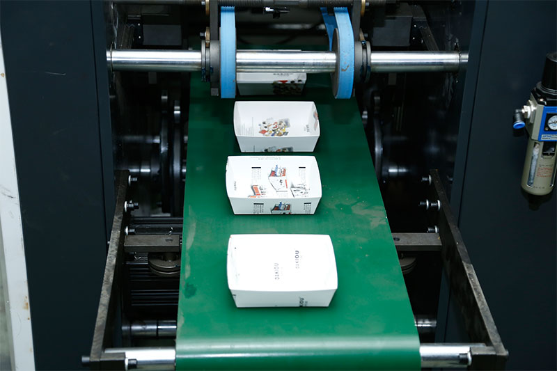 HBJ-D300全自動(dòng)西點(diǎn)紙盒成型機(jī)是一款自主研發(fā)的折邊、上膠、成型為一體的紙盒成型機(jī),成型紙盒適用于西點(diǎn)紙盒、三明治紙盒、蛋糕紙托、沙拉盒。采用真空吸紙,熱熔膠上膠,預(yù)折,再次上膠,勾邊成型等工序來一次成型,節(jié)省成型工序,提高產(chǎn)能,成型更加美觀。替代了之前此類紙盒必須要用糊盒機(jī)先糊邊,再用成型機(jī)來粘角成型的繁瑣步驟。